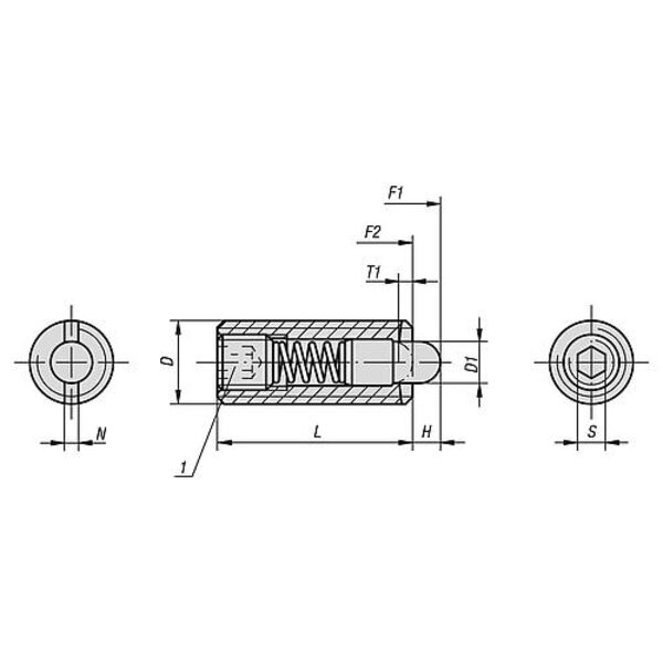 FEDERNDES DRUCKSTÜCK STANDARD FEDERKRAFT D=M08 L=22, STAHL, KOMP:BOLZEN AUS POM