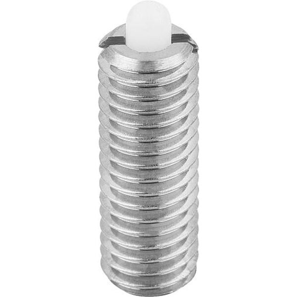 FEDERNDES DRUCKSTÜCK STANDARD FEDERKRAFT D=M04 L=15, EDELSTAHL, KOMP:BOLZEN AUS POM