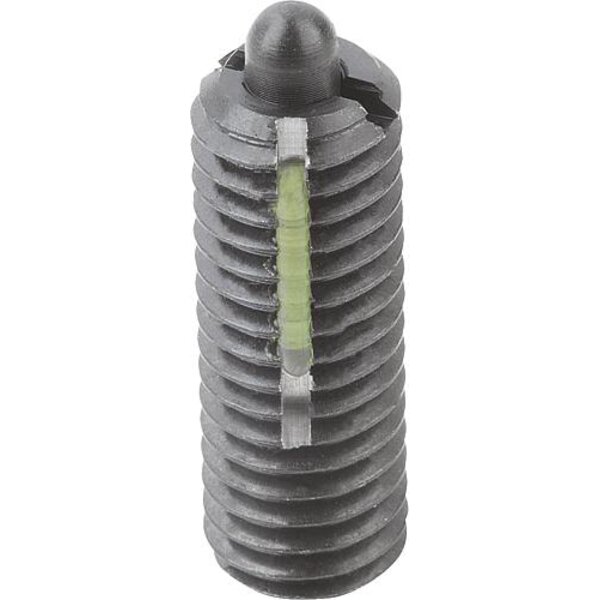FEDERNDES DRUCKSTÜCK LEICHTE FEDERKRAFT, MIT GEWINDESICHERUNG D=M08 L=22, STAHL, KOMP:BOLZEN AUS STAHL