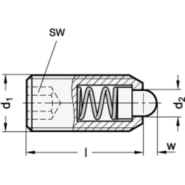Federnde Druckstücke, Stahl / Edelstahl, mit Bolzen, mit Innensechskant
