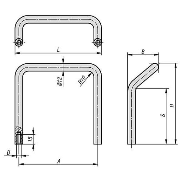 BÜGELGRIFF ABGEWINKELT, A=120, L=132, D=M08, H=66, H1=60, STAHL HOCHGLANZVERC...