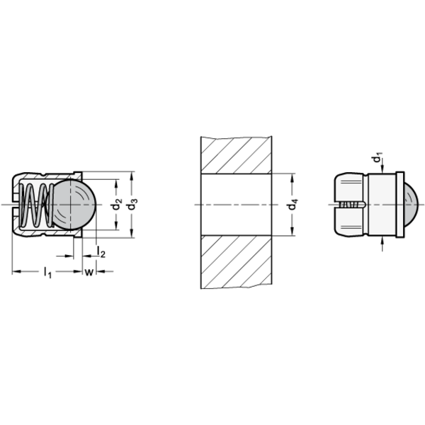 Federnde Druckstücke, zum Einpressen, mit Kugel
