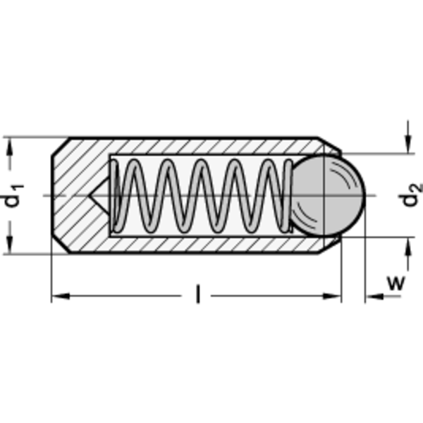 Federnde Druckstücke, Edelstahl, ohne Gewinde, mit Kugel