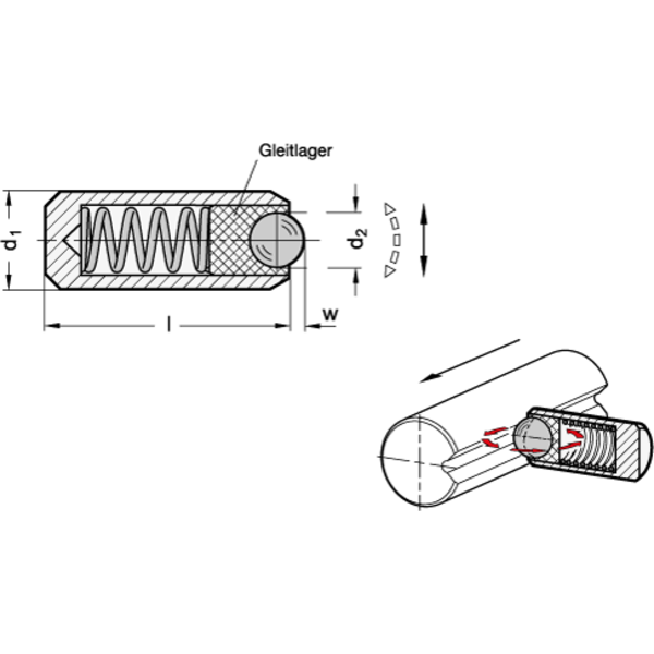 Federnde Druckstücke GN 614.8 werden zur Arretierung sowie für An- und Abdrückfunktionen verwendet.