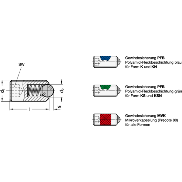 - Gewindesicherung: PFB - Polyamid-Fleckbeschichtung