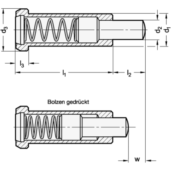 Federnde Druckstücke GN 614.6 werden vorwiegend im Werkzeugbau als gefederter Anschlag sowie für An- und Abdrückfunktionen verwendet.