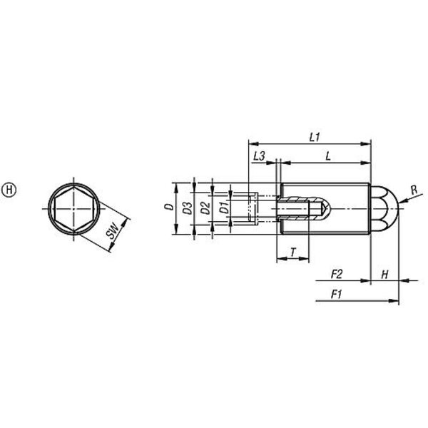FEDERNDES ZUG-/DRUCKSTÜCK STANDARD FEDERKRAFT, MIT VERDREHSICHERUNG D=M20X1,5...