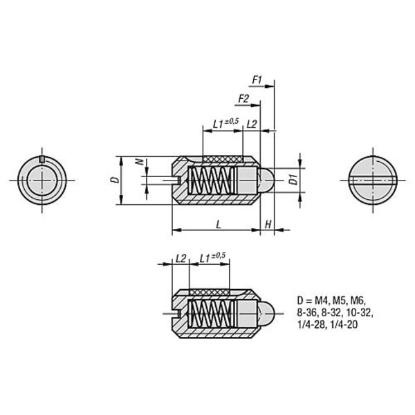 FEDERNDES DRUCKSTÜCK STANDARD FEDERKRAFT, MIT GEWINDESICHERUNG D=1/4-28 L=14,...