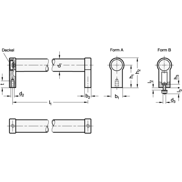 Bei großen Grifflängen bzw. Belastungen können weitere Abstützungen hinzugefügt werden. Einzelne Abstützungen für Rohrgriffe Ø 28 (Form A) sind unter der Norm GN 333.9 lieferbar.
