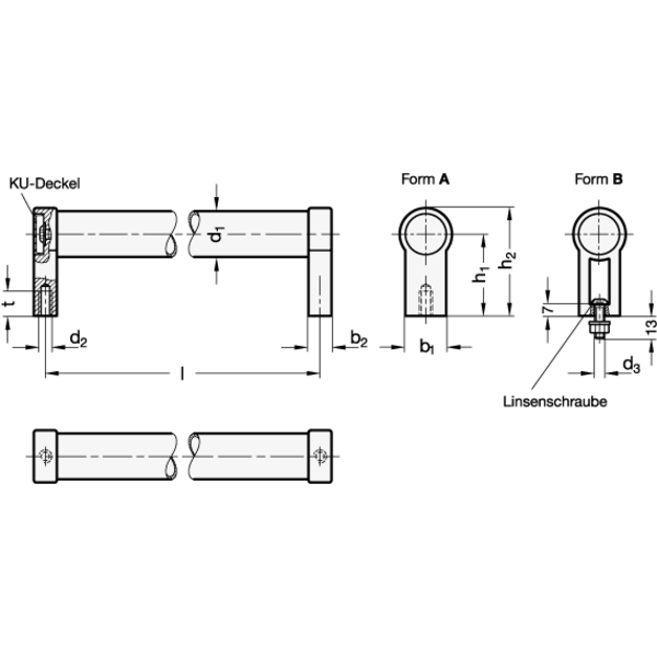 Bei Form B gehören Linsenschrauben, Sechskantmuttern und Unterlegscheiben zum Lieferumfang.