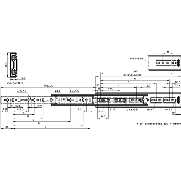Auszugschienensatz 3832DO Schienenlänge 700mm hell verzinkt