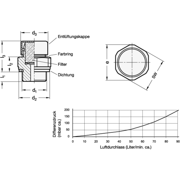 - Werkstoff Entlüftungskappe: M - Edelstahl