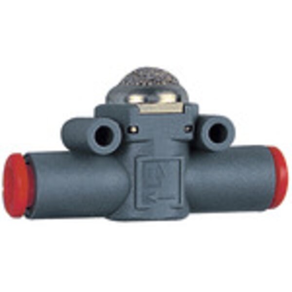 Schnellentlüftungsventil »lineonline«, mit Schalldämpfer, Schlauch - Schlauch, für Schlauch-Ø 4 mm, Betriebsdruck 1 - 10 bar. Die Entlüftung wird durch Verwendung eines rostfreien Schalldämpfers oder durch Verwendung eines Einsteckverbinders mit Luftabfuhr gedämpft.