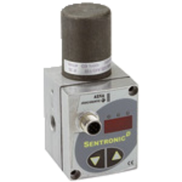 Proportional-Regelventil »sentronic D«, 3-Wege-Ausführung, digital, 24 V DC, G 1/4, DN 8, Druckbereich 0 - 10 bar. Zur elektronischen Druckregelung. Hochdynamisches 3-Wege-Proportionalventil mit digitaler Steuerung. D steht für: - Digitale Steuerungstechnik - Display (integrierte Anzeige) - Direkt gesteuertes Ventil - Dynamisch (hohe Geschwindigkeit) Eine Besonderheit stellt die DaS-Software (siehe Downloads) dar, die über einen PC (Rechnerschnittstelle RS 232) die Möglichkeit der optimalen Reglereinstellung bietet. Gleichzeitig kann der Soll- und Istwert visualisiert werden. Weitere Funktionen sind Diagnose, Parametrierung und Wartung. Über das integrierte Display und die Funktionstasten kann das Ventil im Ausgangs-Druck ebenfalls verändert und auch ohne PC betrieben werden. Vorteile: - geringe Hysterese - sehr kurze Ansprechzeiten - extrem geringe Ansprechempfindlichkeit - kein ständiger Luftverbrauch - analoger Istwert-Ausgang - digitale Regelung - hohe Geschwindigkeit - Kommunikation mit einem PC