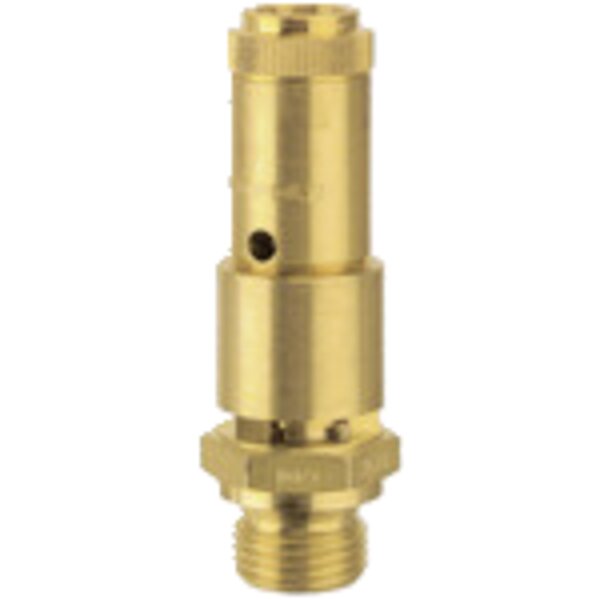 Sicherheitsventil DN 10, Messing, Betriebstemperatur -25 °C bis 180 °C, G 3/4, SW 32, Ansprechdruck 10 bar, baumustergeprüft. Für Druckluft und ungiftige, nicht brennbare Gase, frei abblasend, deshalb nicht für Flüssigkeiten verwendbar, nicht geeignet für Wasserdampf! Die Ventile sind TÜV-zugelassen und haben eine TÜV-Bauteilprüfnummer.
