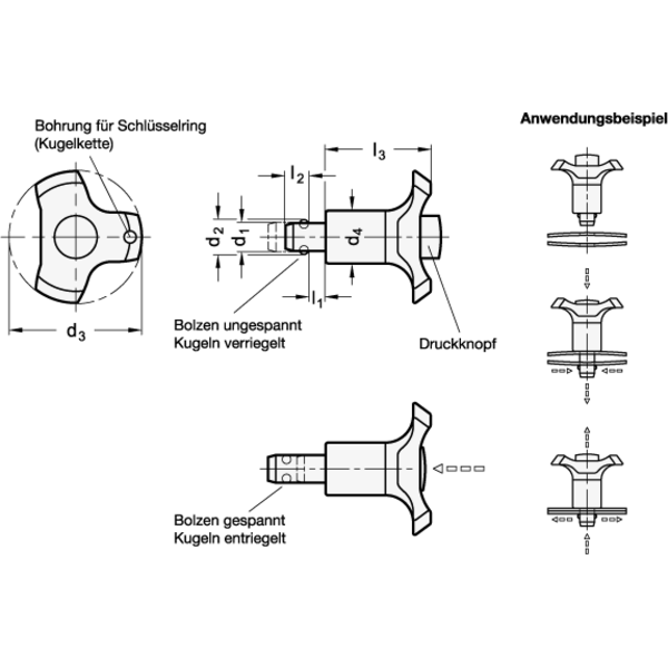 GANTER Kugelspannbolzen mit Klemmlängenausgleich