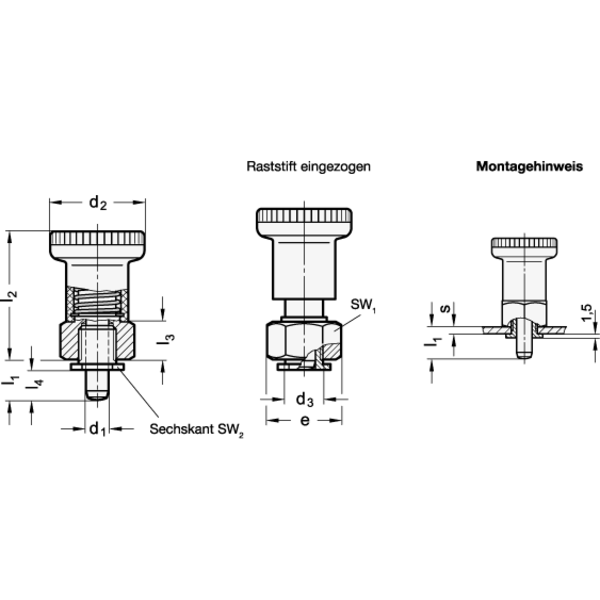 Rastbolzen GN 607.2 ermöglichen eine einfache Montage bei kleinen Wandstärken.
