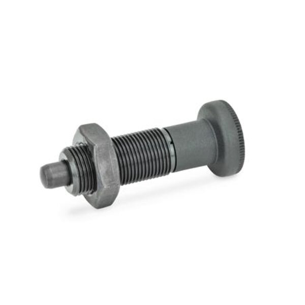 Rastbolzen GN 613 in der Form G bzw. GK mit Gewindezapfen sind für Anwendungsfälle gedacht, wo ein Sonderknopf erforderlich ist bzw. die Betätigung des Rastbolzens nicht in der üblichen Weise von Hand erfolgt.
