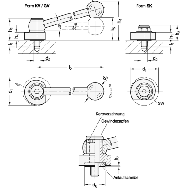 - Form: KV - mit Kugelgriff, schräg (Kerbverzahnung)