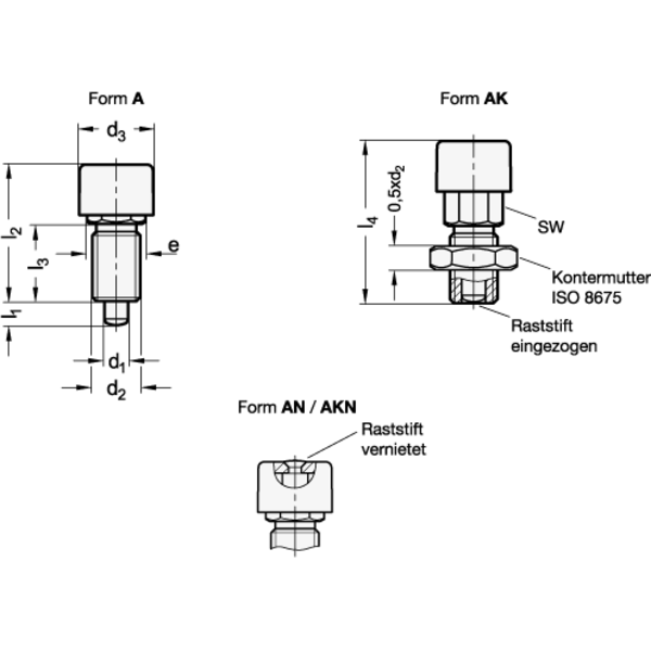 - Form: AKN - mit Kontermutter, mit Edelstahl-Knopf