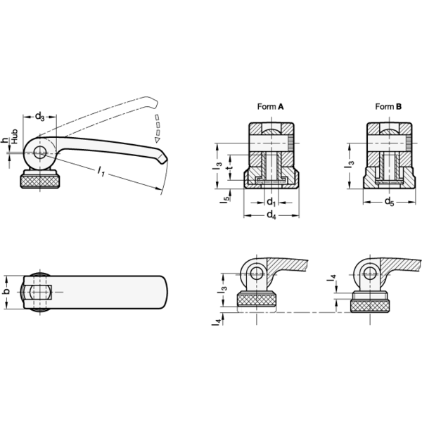 Exzenterspanner mit Innengewinde, Hebel Stahl
