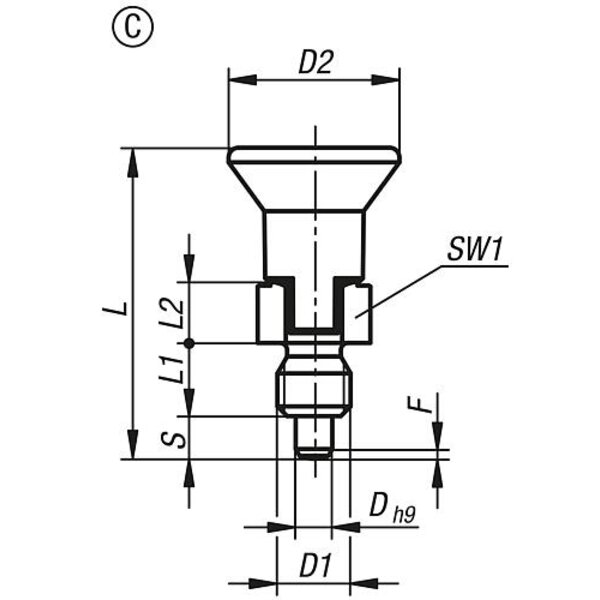 ARRETIERBOLZEN ECO KURZE AUSFÜHRUNG GR.3 D1=M16, D=8, FORM:C M.RASTNUT, O.KON...