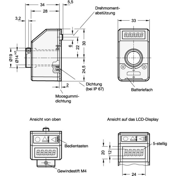 Stellungsanzeiger, 5-stellig, elektronisch, LCD-Display