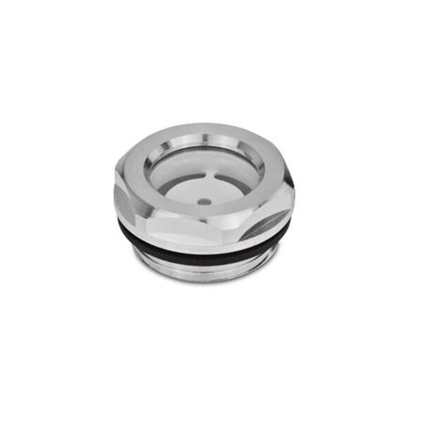 Die sehr stabil dimensionierte, kratzfeste Sichtscheibe der Ölschaugläser GN 743.1 ist über einen O-Ring am Scheibenumfang und nicht an der Planseite abgedichtet, dadurch ist die Dichtheit unabhängig von der axialen Anpresskraft.