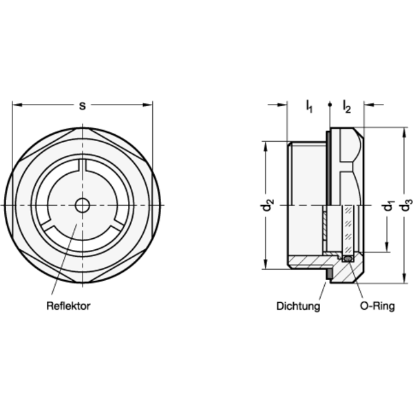 Der Außendurchmesser der Ölschaugläser mit dem zurückgesetzten Sechskant ist auf Einschraublöcher für Rohrverschraubungen DIN 3852 abgestimmt.