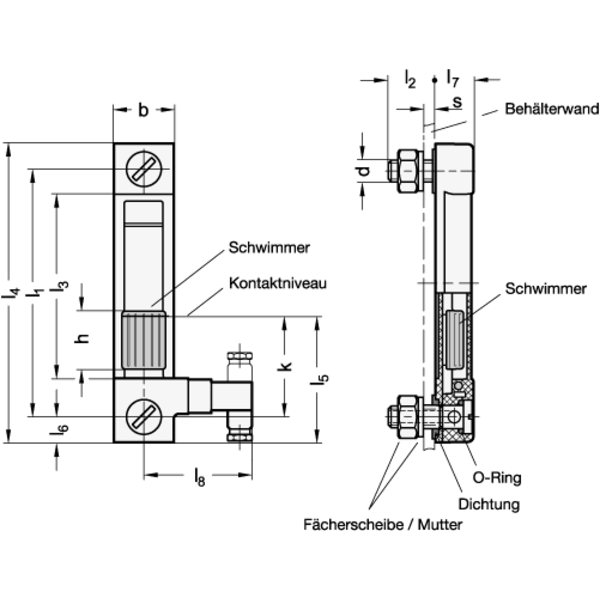 Mit Ölstandsanzeiger GN 656.1 kann der Flüssigkeitsstand, nicht nur eingesehen, sondern auch über einen elektrischen Kontakt überwacht werden.