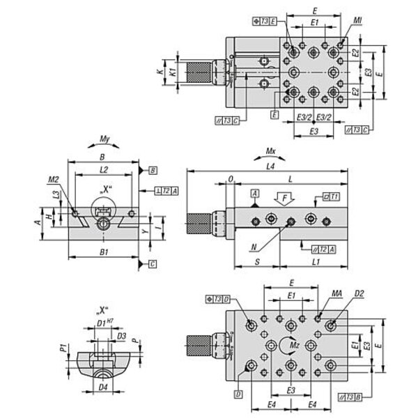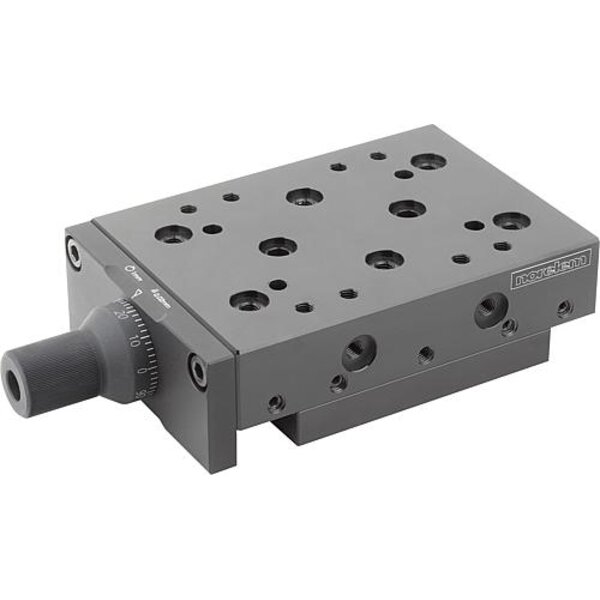 An sämtlichen Gewindebohrungen befindet sich eine zusätzliche Zentrierbohrung. In Verbindung mit unseren Zentrierringen 20240 können weitere Verbindungselemente passgenau auf dem Schlitten montiert werden. Schnelle und nachträgliche Kombinierbarkeit in x-y-z Richtung.