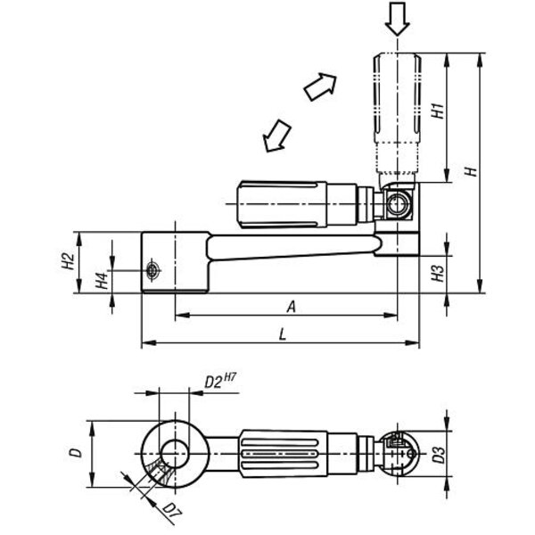 HANDKURBEL ÄHNLICH DIN469 OHNE QUERBOHRUNG, PASSBOHRUNG D2=12, A=100, H=107, ...