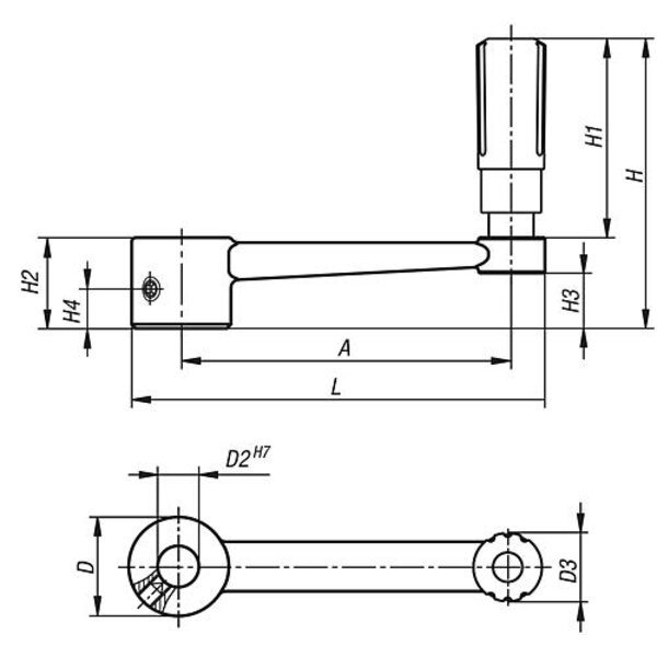 HANDKURBEL ÄHNLICH DIN469 OHNE QUERBOHRUNG, PASSBOHRUNG D2=10, A=80, H=71,1, ...
