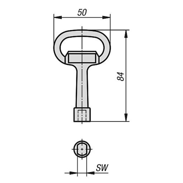 STECKSCHLÜSSEL FÜR DREHRIEGEL, FÜR HYGIENEBEREICH, MIT ZWEIKANT SW=13, ZINK BLAU