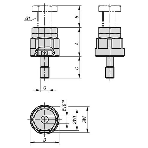 STÜTZE VERSTELLBAR, M12, A=150 VERGÜTUNGSSTAHL, BRÜNIERT
