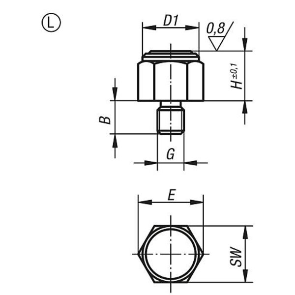 POSITIONSFUß, G=M08, FORM:L, AUTOM.STAHL BRÜN. U. EINSATZGEHÄRTET, SW=17