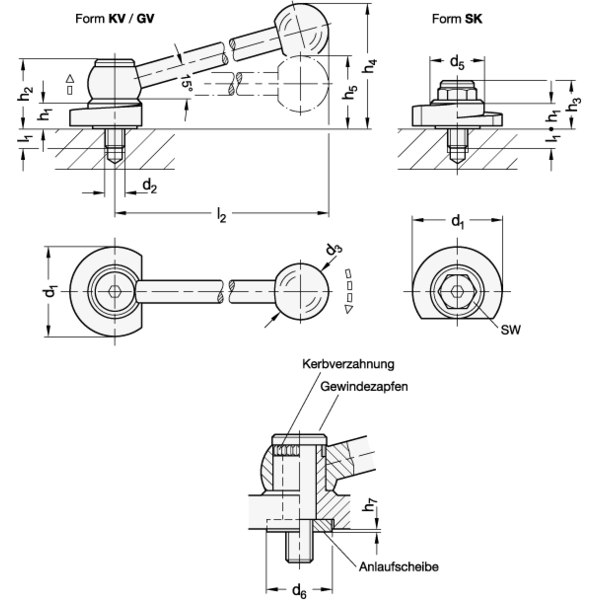 GANTER Edelstahl-Spannriegel mit Kugelgriff, links
