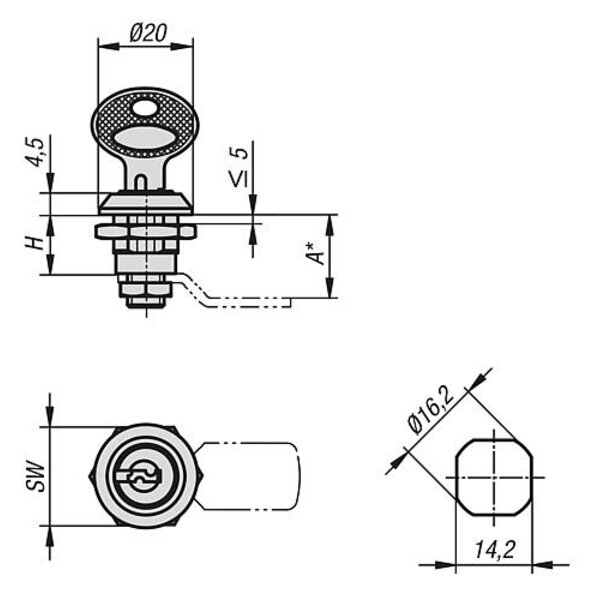 *Das Maß A ergibt sich aus der Kombination von Drehriegel und Zunge und wird bei den passenden Zungen angezeigt.