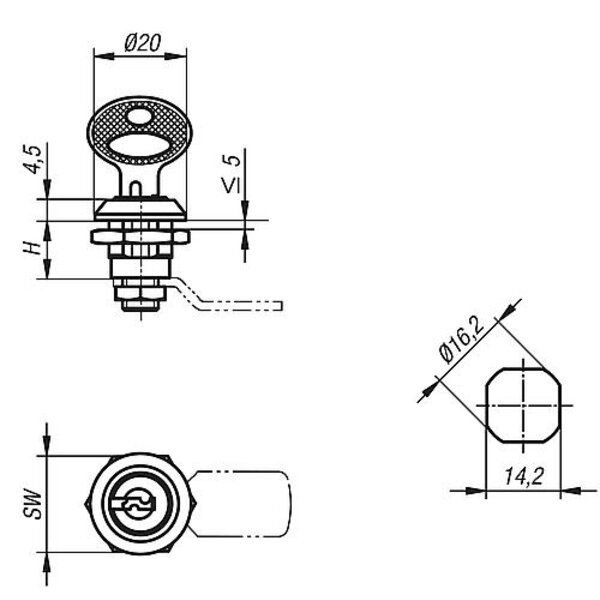 DREHRIEGEL KLEINE AUSFÜHRUNG ABSCHLIEßBAR, H=13, ZINK