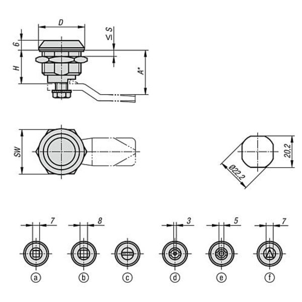 *Das Maß A ergibt sich aus der Kombination von Drehriegel und Zunge und wird bei den passenden Zungen angezeigt.