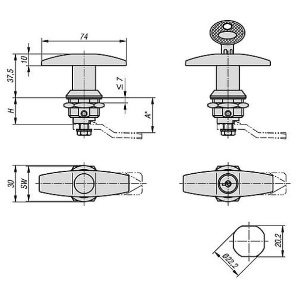 *Das Maß A ergibt sich aus der Kombination von Drehriegel und Zunge und wird bei den passenden Zungen angezeigt.