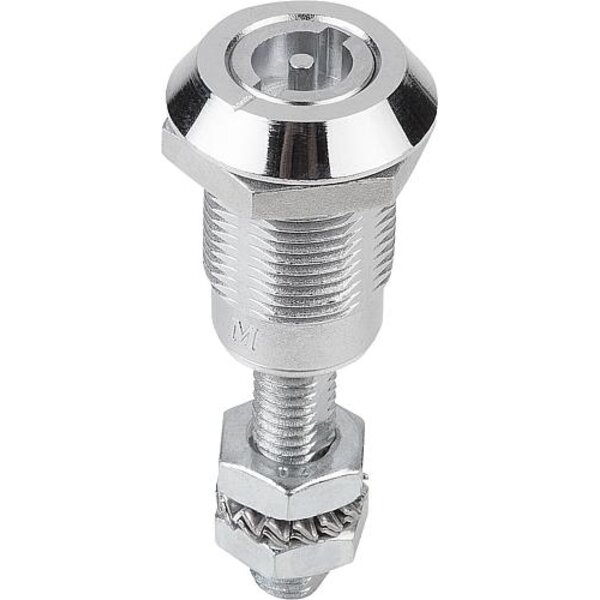 Durch Rechtsdrehen der Betätigung wird die Zunge um 90° gedreht und in Schließstellung gebracht. Durch eine weitere Drehung um 90° wird die Zunge in axialer Richtung angezogen und somit der Anpressdruck erhöht. Der Anzugsweg beträgt 6 mm. Die Befestigungsmutter ist einseitig als Erdungsmutter mit Krallen ausgeführt. Die gekröpfte Zunge ist positiv und negativ anwendbar.