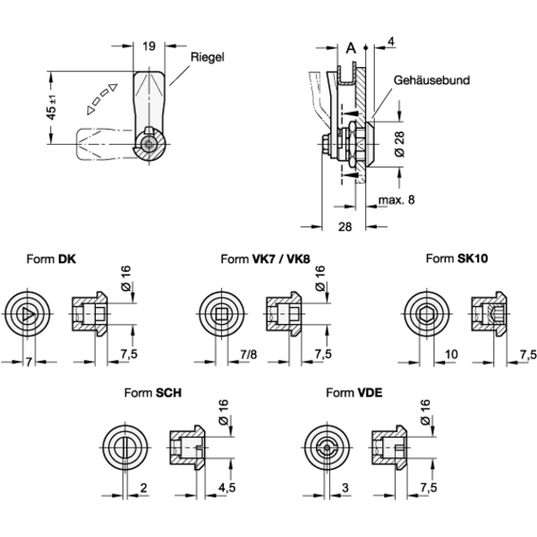 Verriegelungen, mit Steckschlüssel, Gehäusebund schwarz