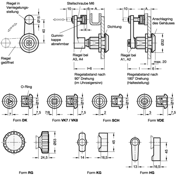 GANTER Dreh-Spannriegel mit Rändelgriff, verstellbar