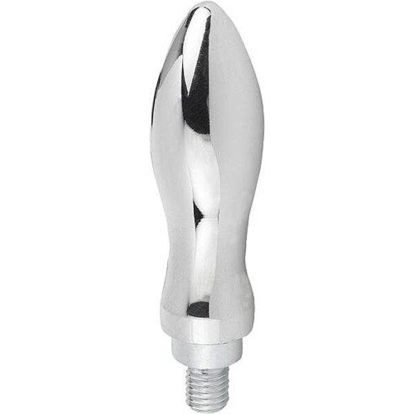 Ballengriff poliert, Achsteil verzinkt, blau passiviert.