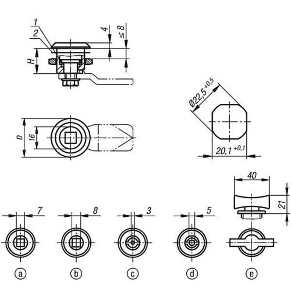 DREHRIEGEL KLEINE AUSFÜHRUNG, MIT DOPPELBART 3MM, D=28, H=18, EDELSTAHL 1.440...
