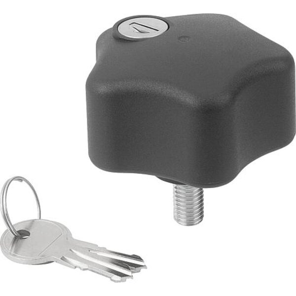 FÜNFSTERNGRIFF ABSCHLIEßBAR, D1=68 M10X20, KUNSTSTOFF SCHWARZGRAU, KOMP:STAHL