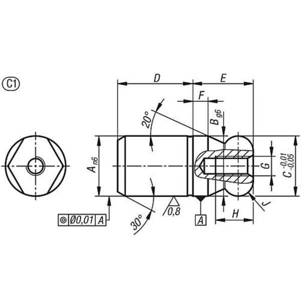 AUFNAHMEBOLZEN INNENGEWINDE EINSEITIG GR.1 C=10, A=10, G=M03, FORM:C MIT KUGELANSATZ ABGEFLACHT, WERKZEUGSTAHL