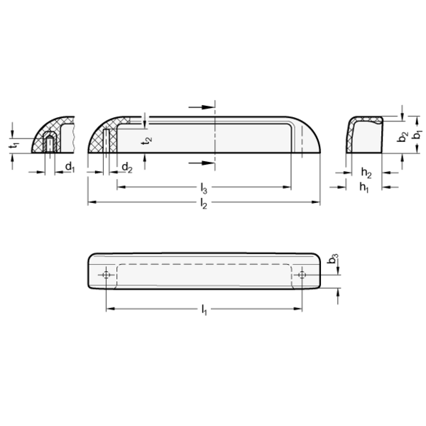 Griffleisten GN 130.2 mit Bohrung B 4,5 sind zur Befestigung mit Blechschrauben der Gewindegröße ST 4,8, wie z.B. Linsenkopf-Blechschrauben nach DIN ISO 7049, vorgesehen. Sie zeichnen sich durch die schmale Bauform aus.