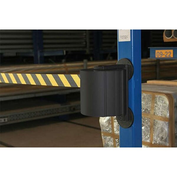 -Wandgurt (extra lang), Gurt schwarz-gelb Diese extra langen Absperrgurte eignen sich zur Personenführung an Check-In Schaltern, in Wartehallen oder Eingangsbereichen.